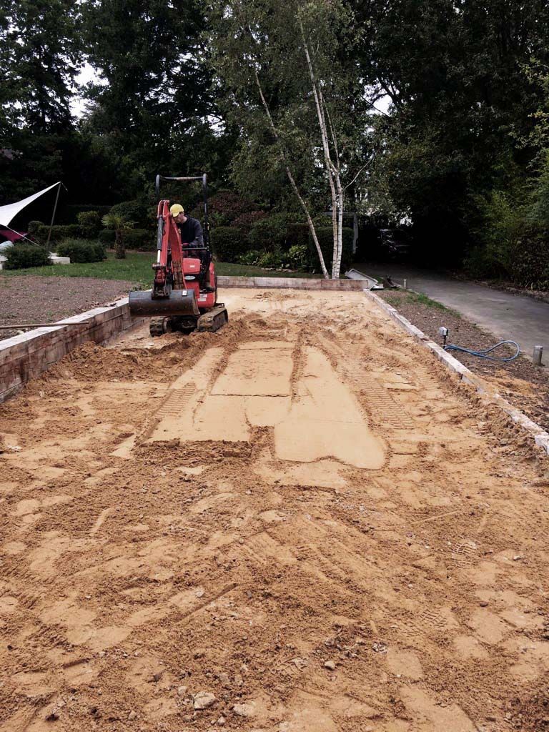 En préalable de la plupart de nos créations de jardin nous sommes amenés à faire du terrassement pour la remise à niveau du terrain, la composition de niveaux de terrasse et retenues de terre, les divers réseaux à faire passer dans des tranchées.